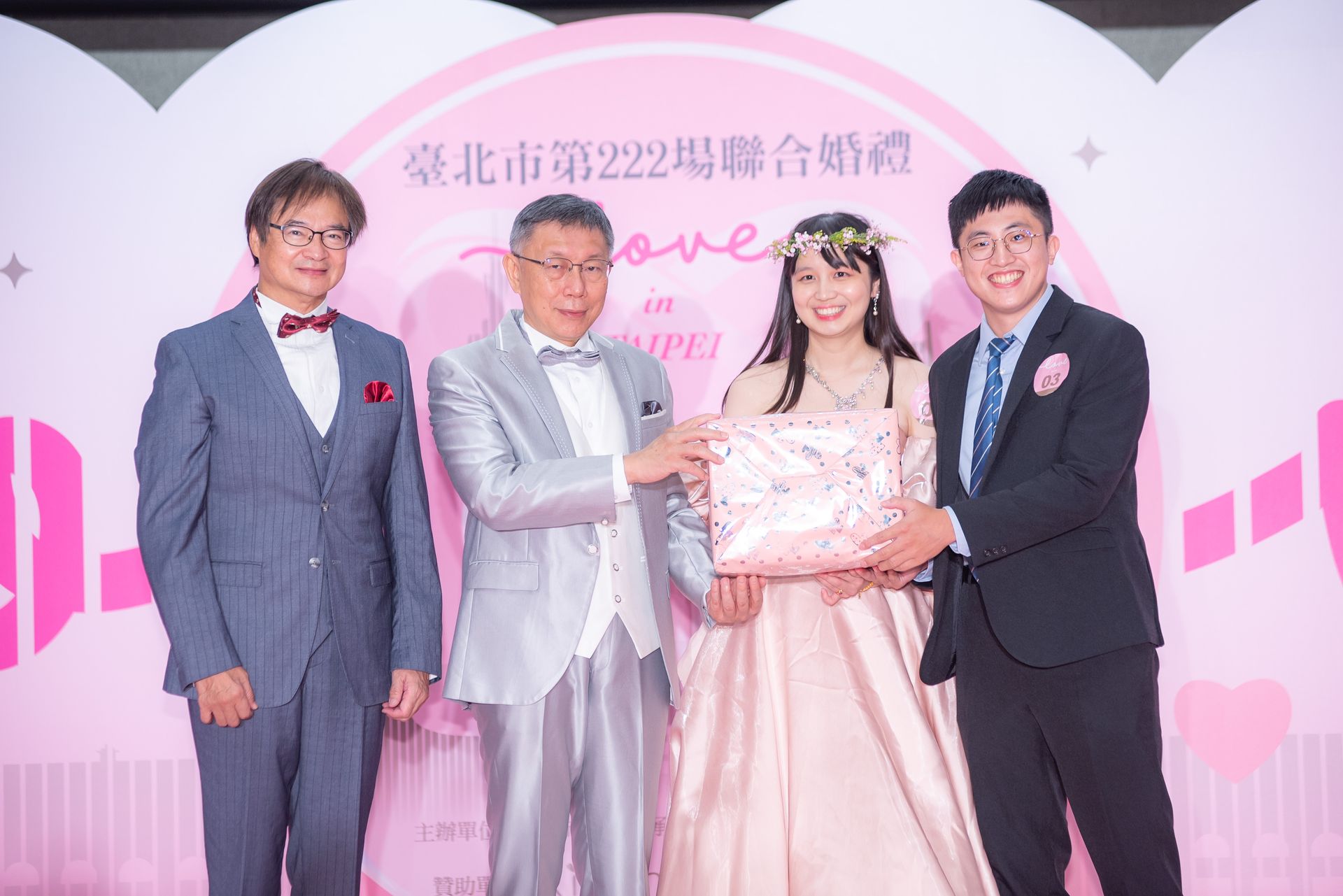 大寶國際策動儀式美學與話題操作,打造柯文哲市長任內壓軸婚禮。象徵「愛愛愛」的第222場臺北聯合婚禮,邀百對新人共譜浪漫篇章,媒體大篇幅報導、社群熱議洗版,成功放大政策亮點與城市幸福品牌。